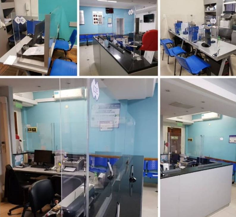 - Colocación de mamparas acrílicas en las recepciones.